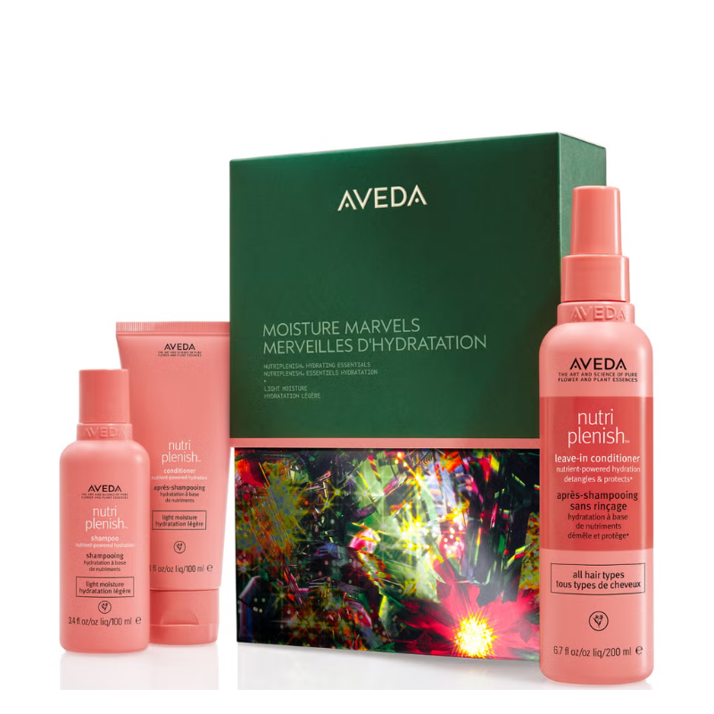 The Aveda Moisture Marvels Nutriplenish™ Hydrating Essentials Light Gift Set is a limited-edition trio that delivers lightweight hydration, shine, and heat protection for fine to medium hair, leaving it soft, nourished, and visibly healthier.