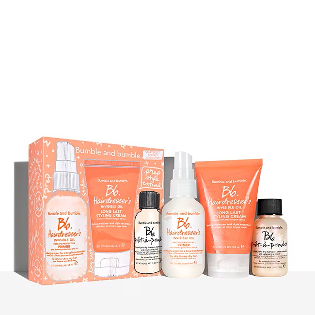 The Bumble and bumble Travel-Size Prep, Style + Extend Hair Set offers a complete three-step routine to hydrate, protect, style, and refresh hair for smooth, frizz-free, and effortlessly maintained results wherever you go.