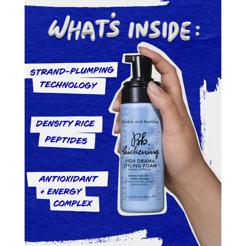 This airy, high-performance styling foam is both a hair thickener and scalp treatment, designed to deliver an instant increase in visible hair density and dramatic root-to-end volume. Powered by Strand Plumping Technology, it visibly thickens each strand while creating long-lasting lift that holds all day.