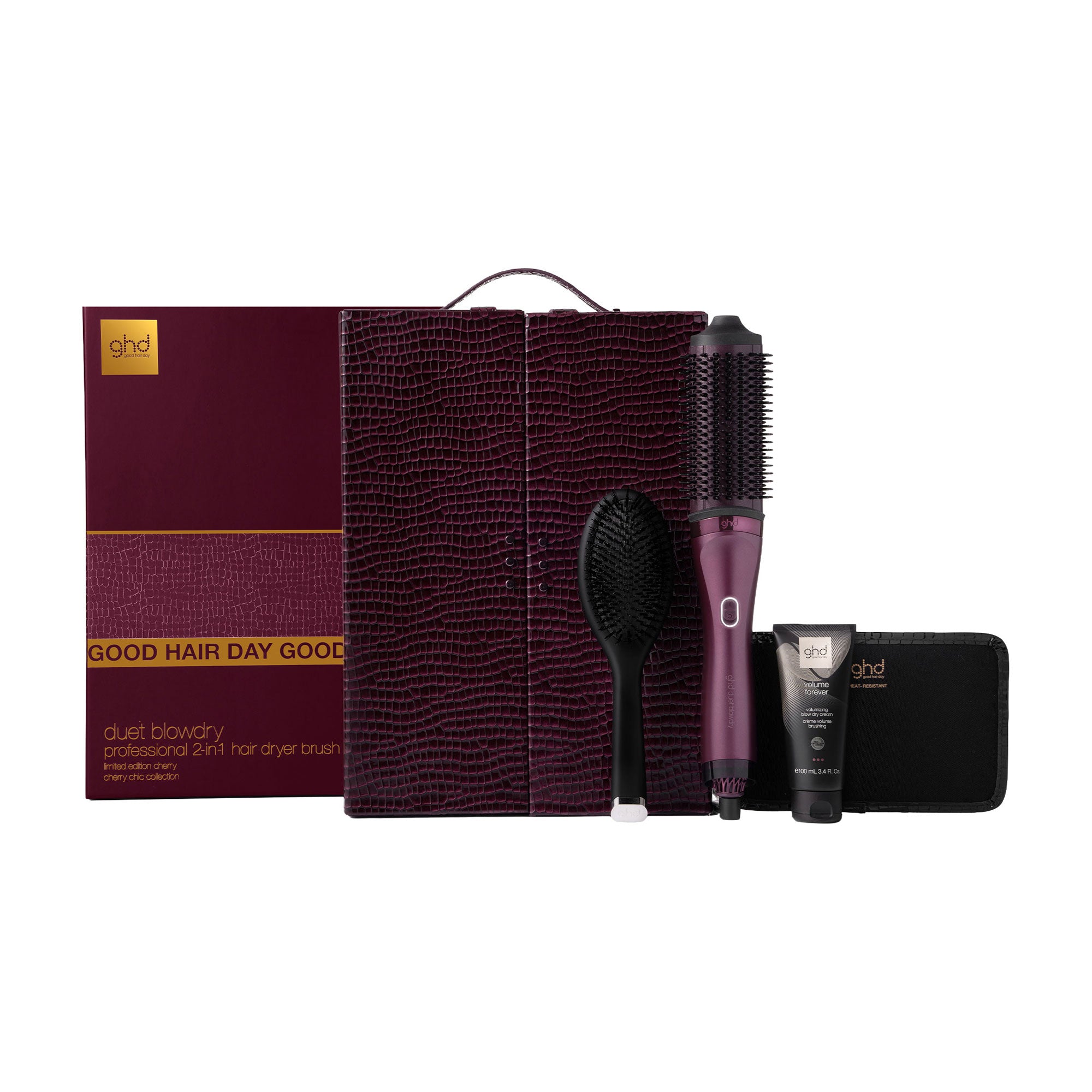 Step into a season of high-gloss glamour with the ghd Duet Blowdry Professional 2-in-1 Hair Dryer Brush, part of the luxurious Cherry Chic Collection. Cloaked in a rich, festive cherry hue and presented in an elegant travel-inspired vanity case, this limited-edition set combines cutting-edge innovation with timeless sophistication.