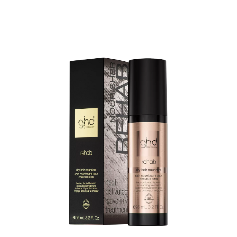 ghd Rehab Dry Hair Nourisher Heat-Activated Leave-In Cream is a heat-activated leave-in cream that deeply nourishes dry hair, smooths frizz and restores softness and shine.