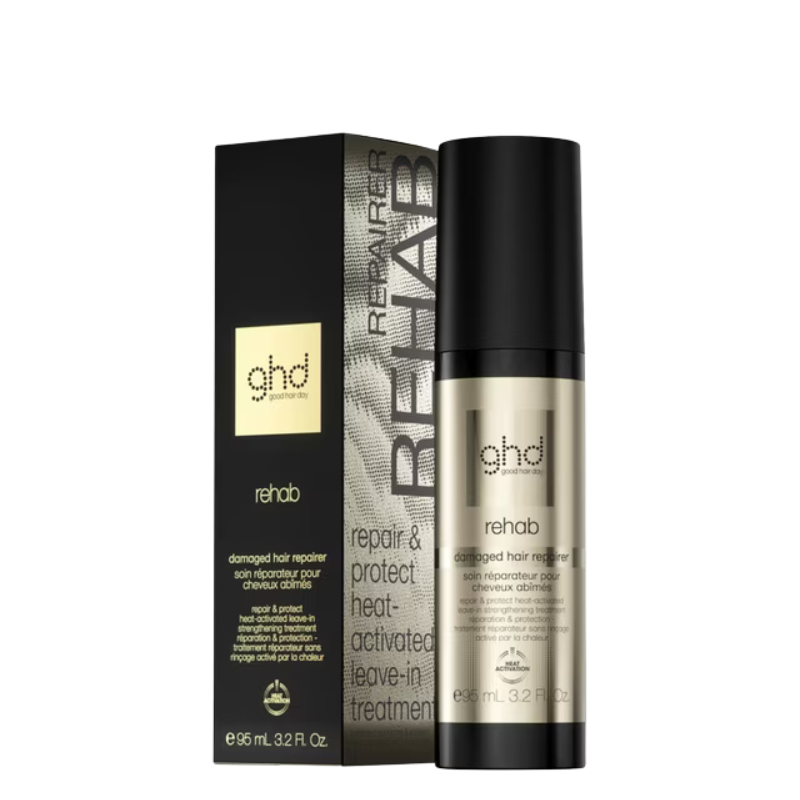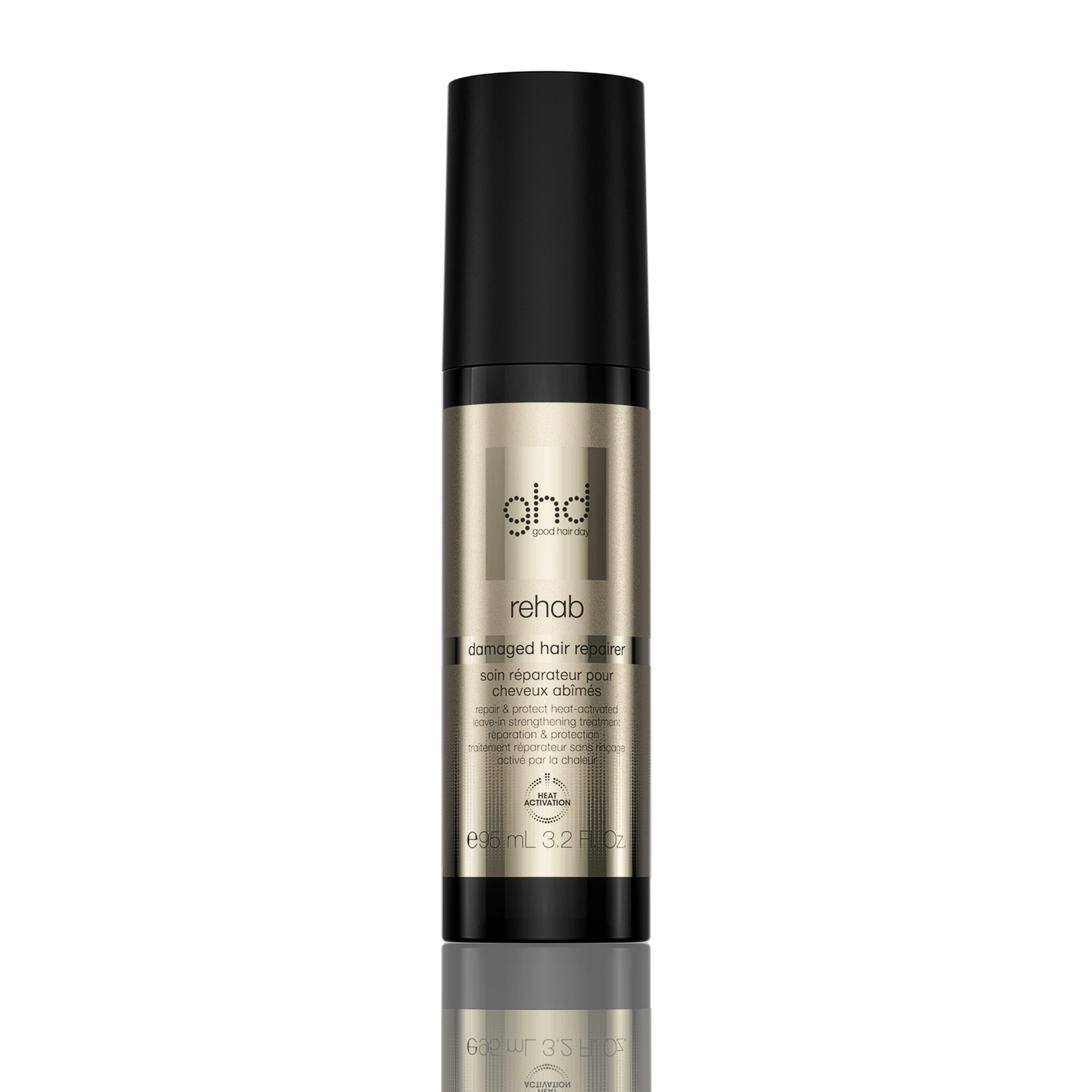 ghd Rehab Damaged Hair Repairer Heat-Activated Leave-In Treatment is a heat-activated strengthening treatment that repairs existing damage, reduces breakage and restores softness and shine.
