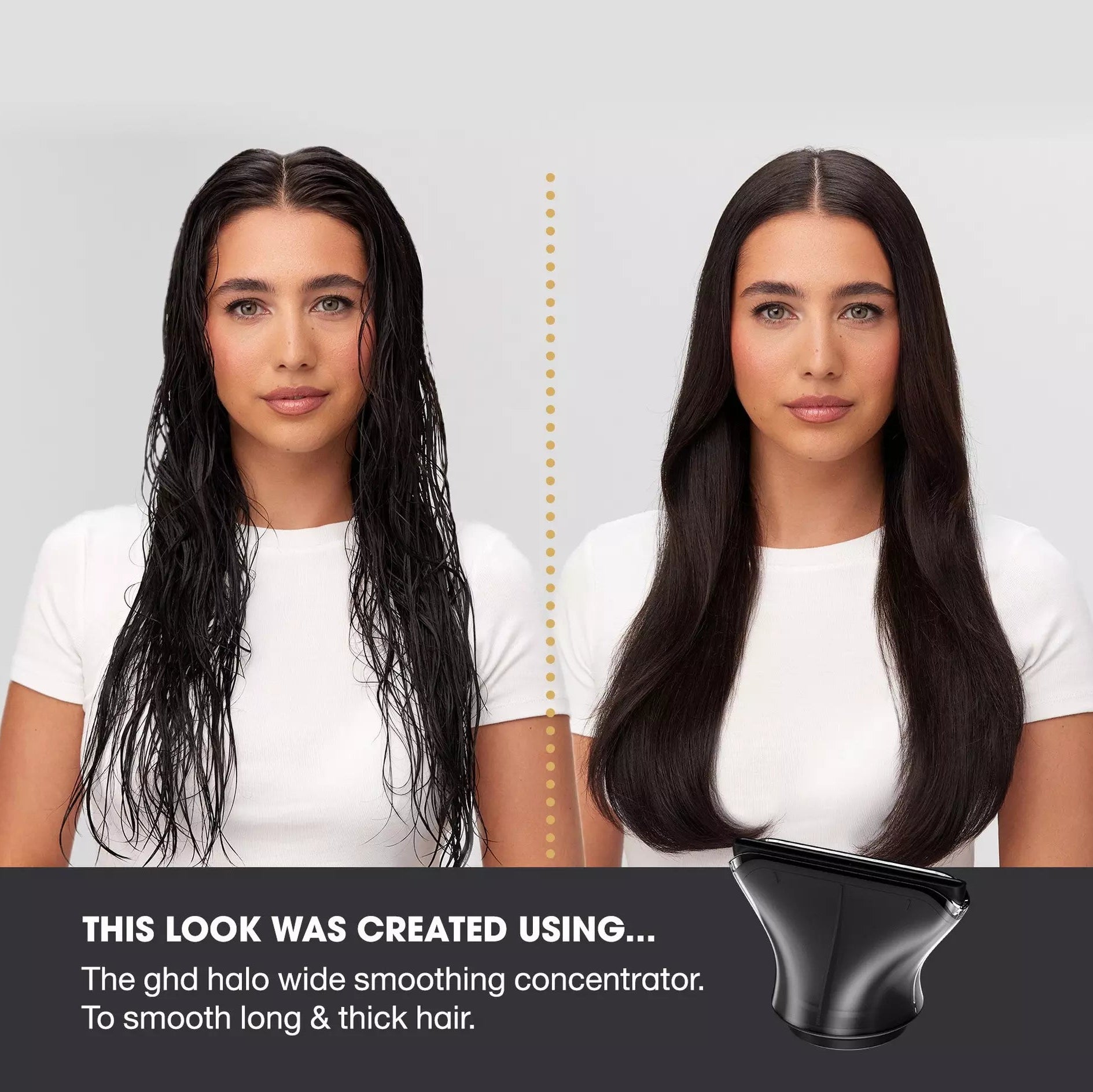 Designed to elevate your blow-dry, this wide 65mm halo outlet attachment channels airflow with exceptional accuracy for fast, controlled styling. Powered by breakthrough ghd Halo™ dual-airflow technology, it surrounds a powerful heated air stream with a halo of cool air - keeping the scalp comfortable while helping deliver 2.2x more root lift for a polished, professional finish.