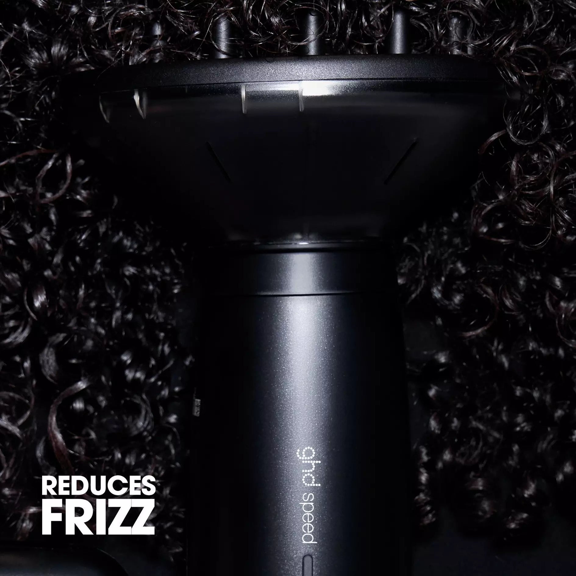 ghd Speed Professional Curly Hair Diffuser Attachment is a professional diffuser attachment designed to enhance natural curls and waves with faster drying, reduced frizz and beautifully defined results.
