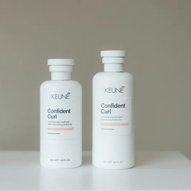 Keune Confident Curl Enhancing Shampoo is a low-lather formula that gently cleanses while hydrating, defining, and smoothing curls for soft, bouncy, frizz-free results.