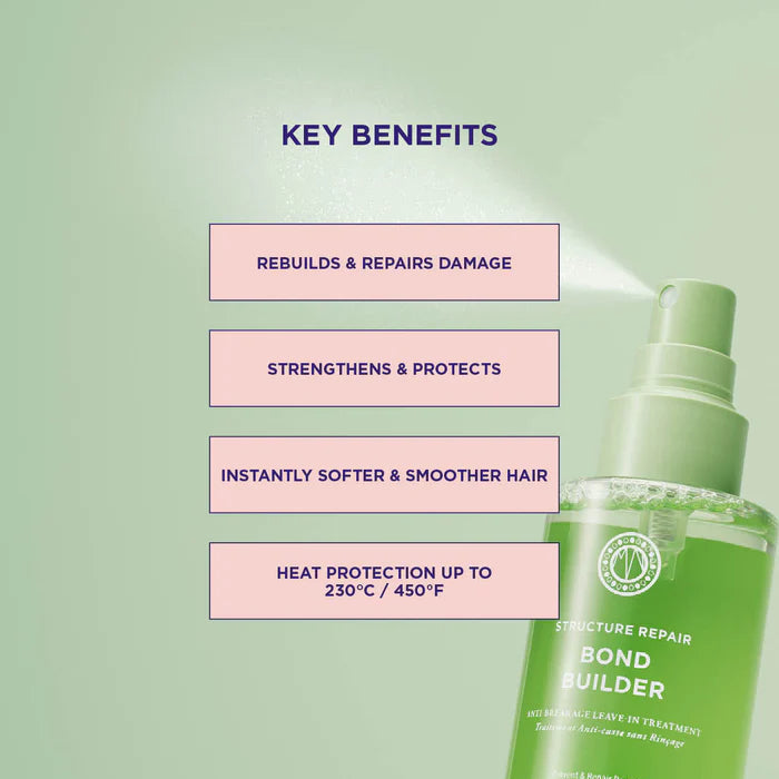 Maria Nila Bond Builder Structure Repair Anti-Breakage Leave In Treatment 150ml is a multi-benefit bond-building leave-in that repairs, protects and strengthens hair while delivering heat protection, softness and shine.
