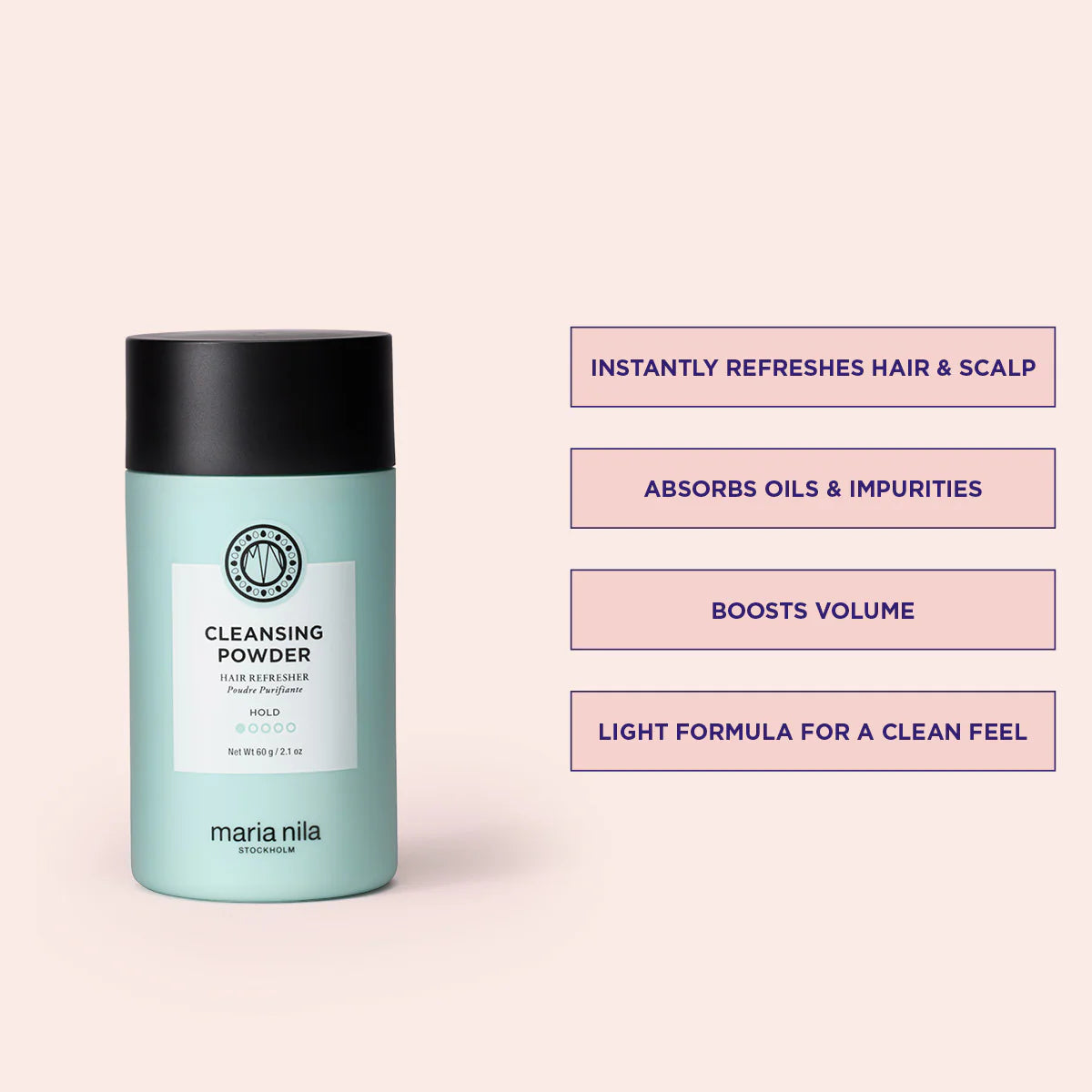 Maria Nila Cleansing Powder Hair Refresher is a lightweight cleansing and styling powder that instantly refreshes the hair and scalp while adding soft volume and texture.