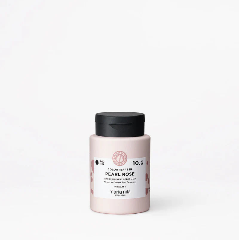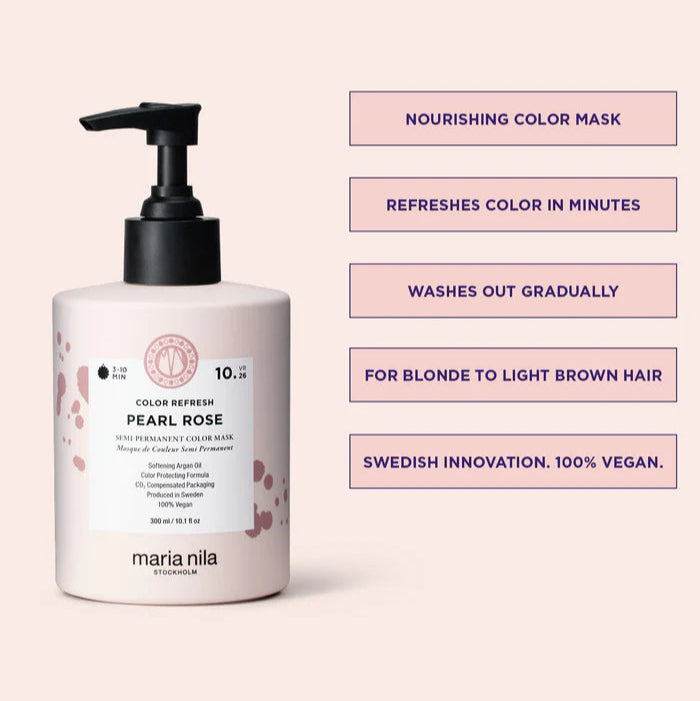 The Maria Nila Colour Refresh Semi-Permanent Colour Masque – Pearl Rose is a nourishing, vegan hair mask that adds a soft rosy pearl tone to blonde hair while enhancing shine and hydration for 4–10 washes.