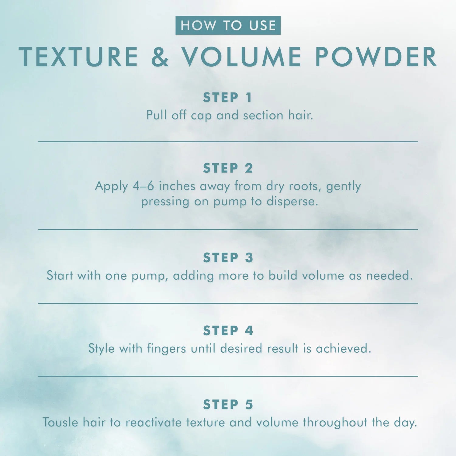 A lightweight, non-aerosol styling powder that delivers instant root lift, texture and flexible volume with a soft, touchable finish.