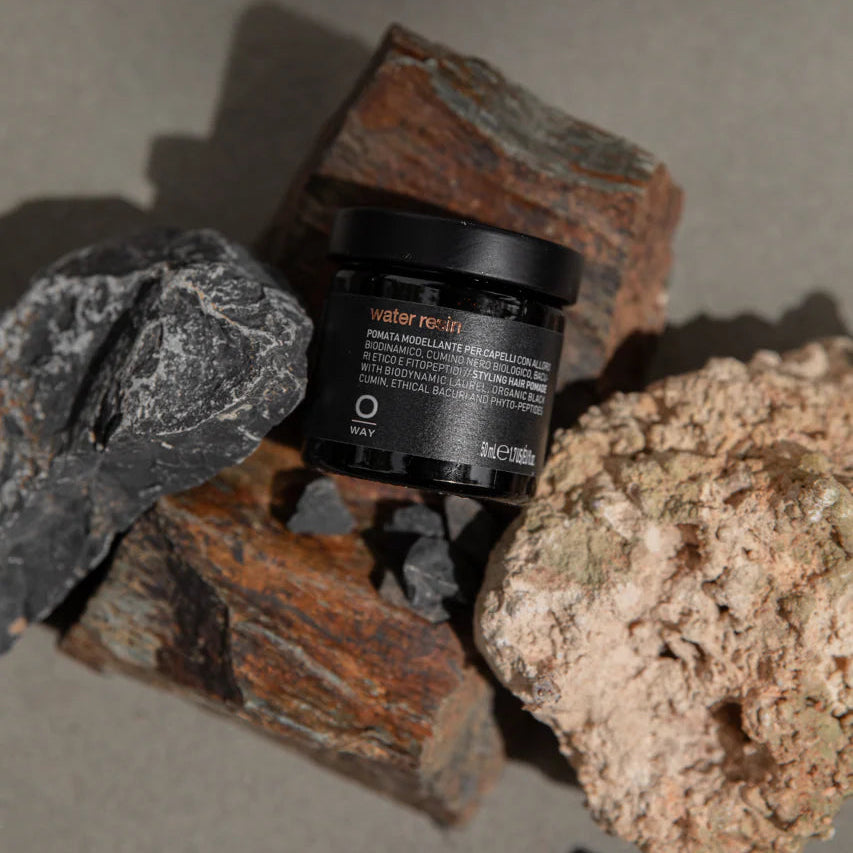 Oway Water Resin is a versatile, water-based styling resin that combines flexible hold with strengthening hair care - perfect for sleek, controlled or wet-look styles.