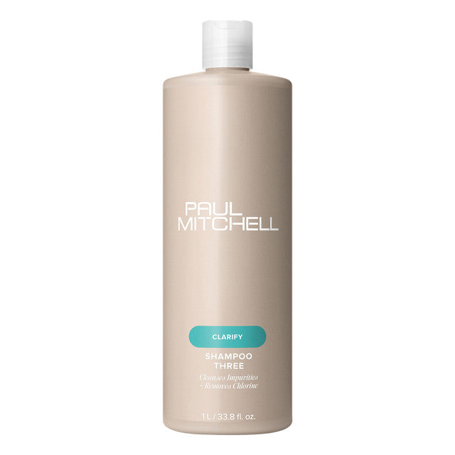 Paul Mitchell Clarifying Shampoo Three removes buildup, strengthens hair, and prevents chlorine-related discoloration, leaving hair fresh, vibrant, and healthy.