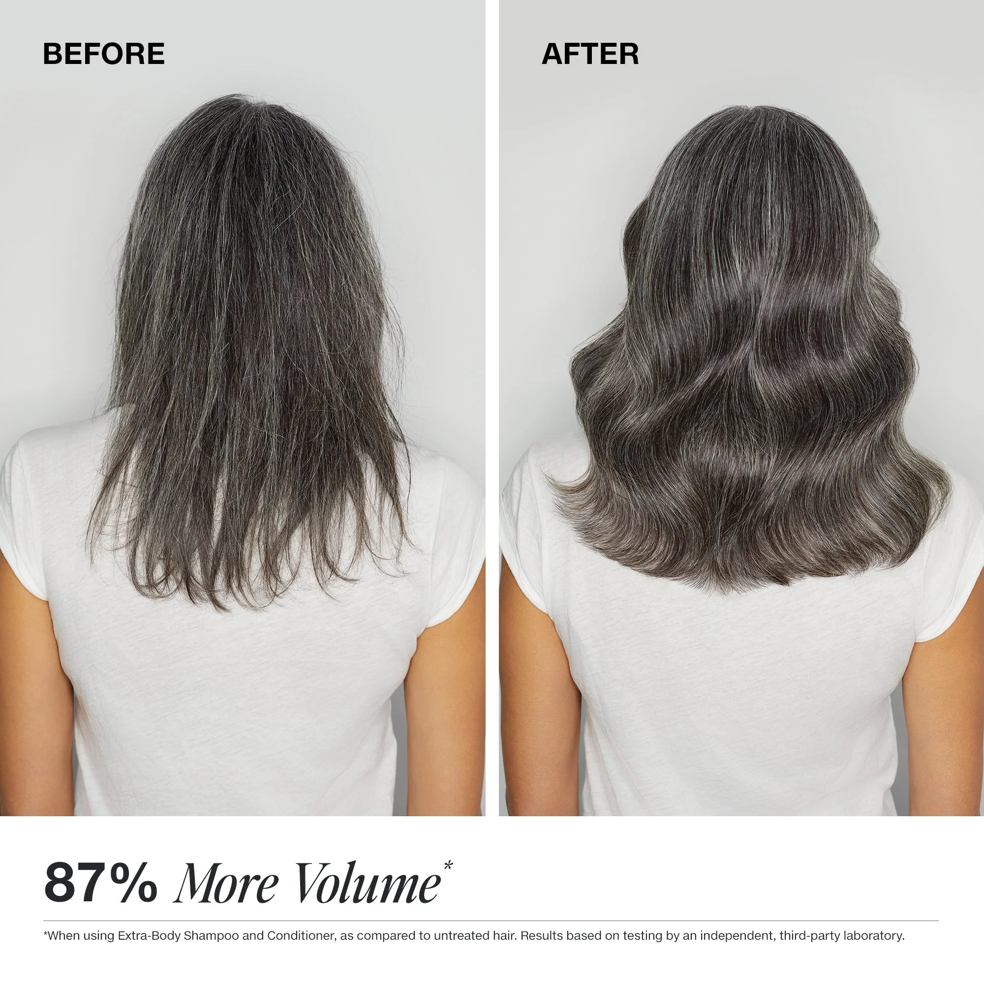 This super body-building formula gently conditions while adding lift and movement, helping hair appear thicker and more voluminous. Enriched with panthenol, it helps boost body while supporting repair and resilience in weakened strands.