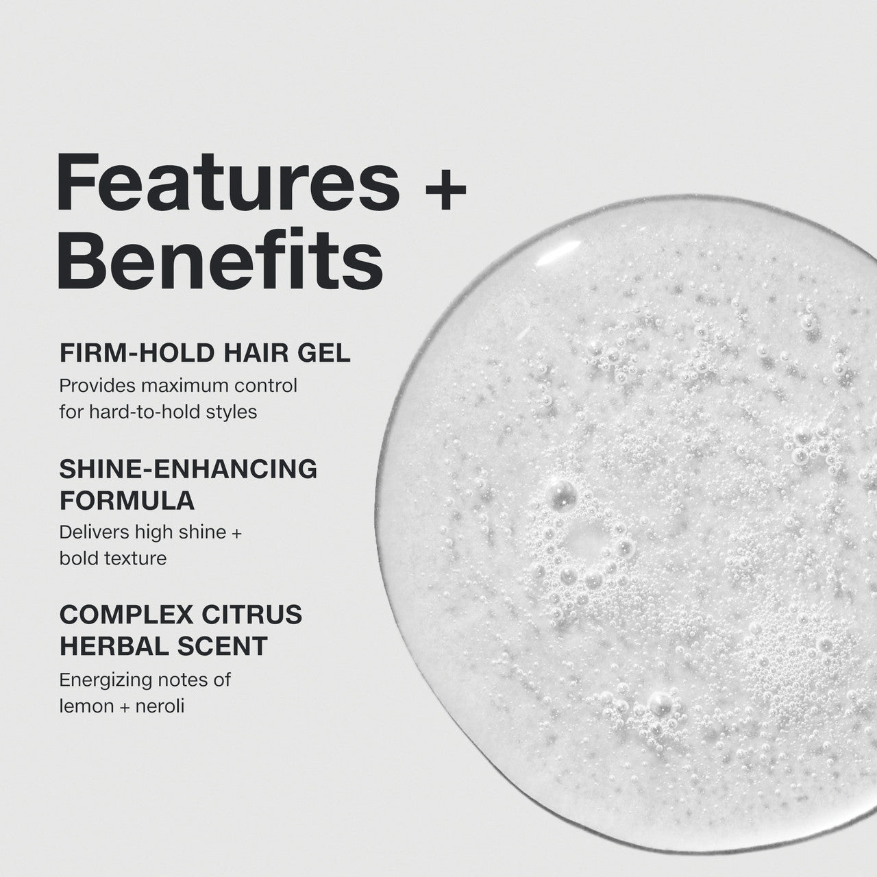 Formulated with firm-holding styling ingredients, this gel locks in any look, providing the structure and control you need without sacrificing shine or flexibility.