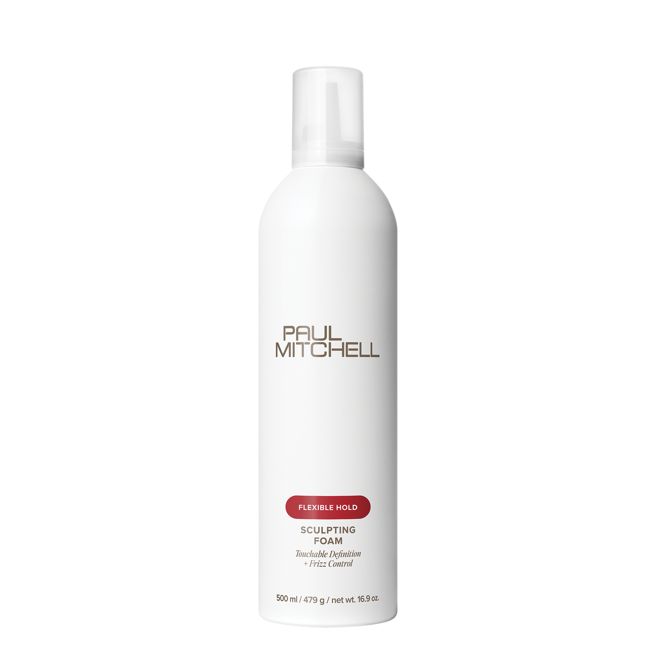 Paul Mitchell Flexible Hold Sculpting Foam enhances texture, defines curls, controls frizz, and adds shine while balancing moisture for a soft, touchable finish.