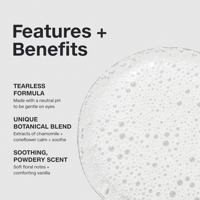 Mild cleansers and a neutral pH create a tearless formula. A unique blend of extracts helps to hydrate and prevent moisture loss, while chamomile and cornflower extract calm and soothe.