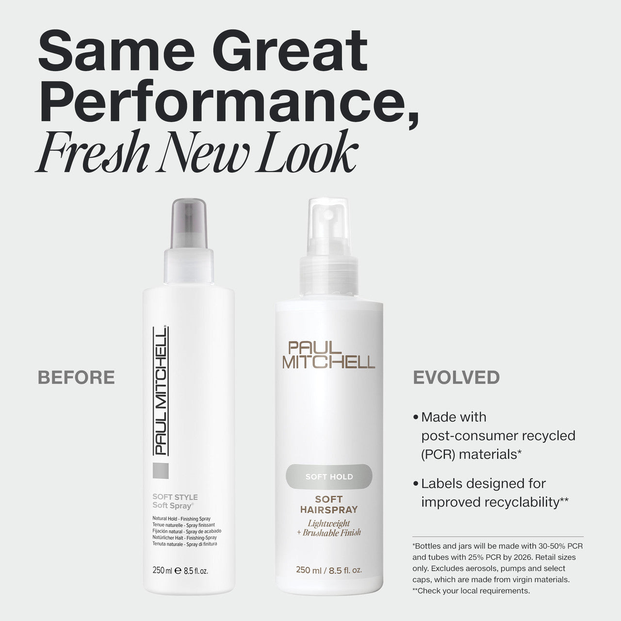 Paul Mitchell Soft Style Soft Spray provides a natural, flexible hold that secures your style with a touchable finish and can be easily restyled with heat or water.
